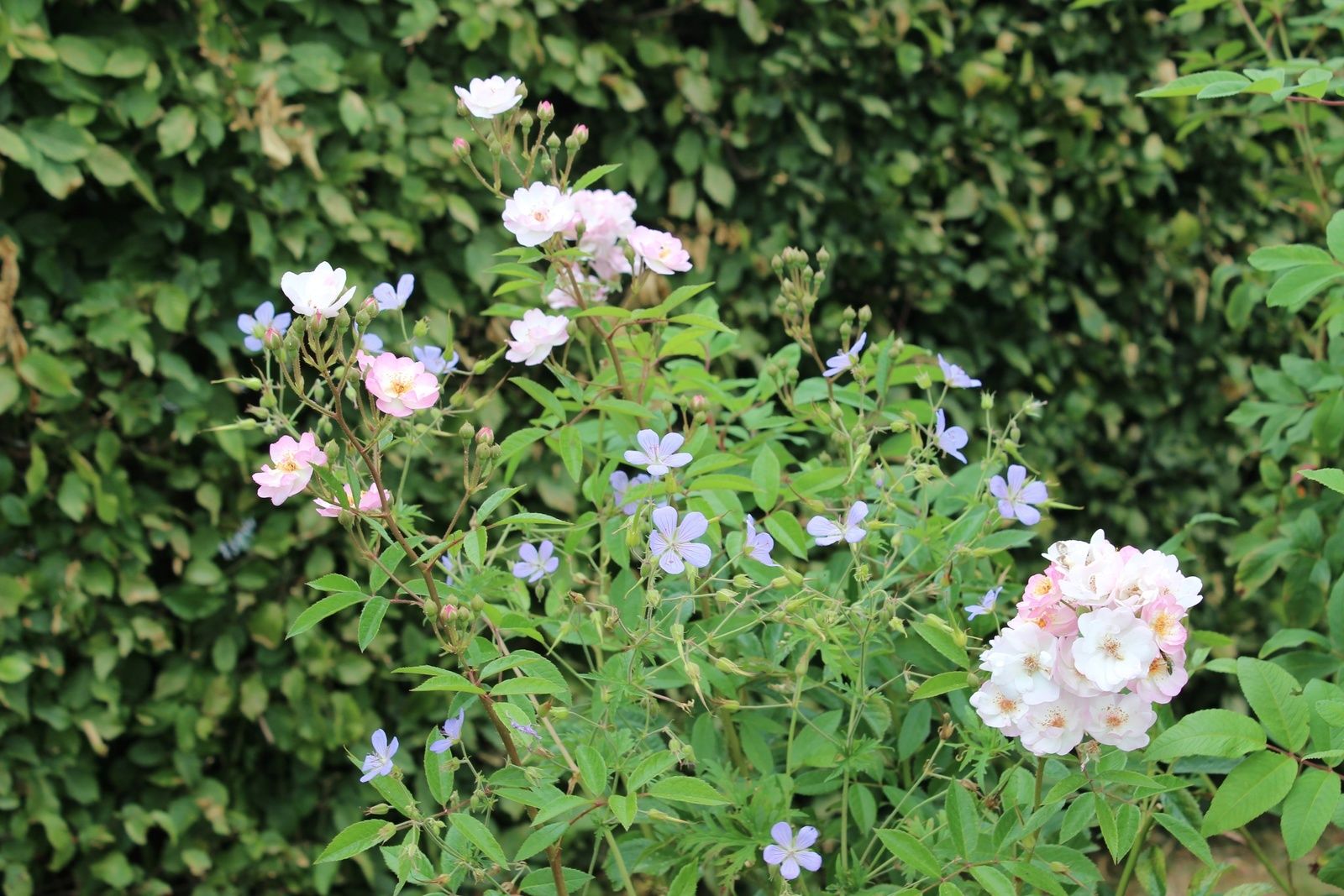 Dans le même massif: une association tout en douceur avec le roser "Gaard um Titzbierg" et le géranium "Blue cloud"
